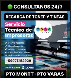 RECARGA DE TINTAS Y TONER ALTERNATIVOS, ENVIOS GRATIS EN PUERTO MONTT LUNES A DOMINGO Fono /Whatsapp +56975152920 24/7 Descartar